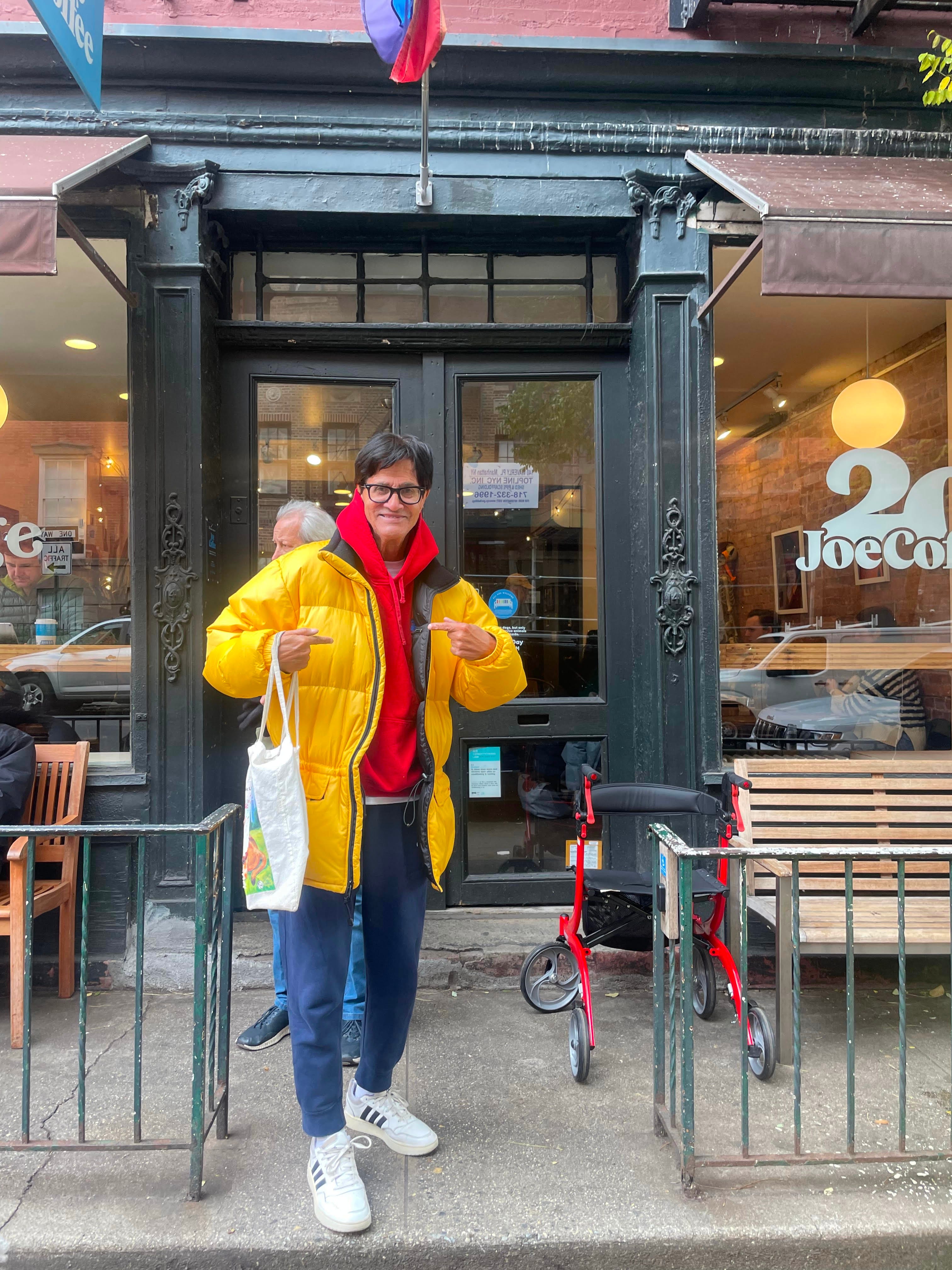 You can find the ‘mayor of Greenwich Village’ - as some fondly call him - most mornings sitting on the benches outside Joe's Coffee on Waverly, greeting the many neighbors and familiar faces walking by and holding court with the eclectic group of regulars that he lovingly refers to as his "focus group." It feels like a snapshot of New York's ethos - all ages, background, walks of life congregating outside the coffeeshop, greeting each other by name, discussing current events in the world and the neighborhood. Arnie sits at the center of that group on most mornings from April through November. Dressed in bright colors, he looks like he’s just stepped off the beach - which is where he does spend the remainder of the year - and has a signature style. Black ray bans, Adidas track suits, vintage t-shirts with storied New York logos, brands like Ralph Lauren, and a sneaker collection that the youth would consider "on trend."